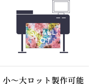 インクジェットプリンタにより、転写紙に印字し、その転写紙とプリントしたいポリエステル生地を合わせて200℃以上の熱ローラーにて加熱することにより気化したインクが化学繊維の分子構造に入り込み染色するプリント方法です。生地自体にインクを染み込ませるので、生地の風合いは自然な手触りになります。また、高発色なフルカラー印刷によりデザインの制限なく自由な訴求が可能です。